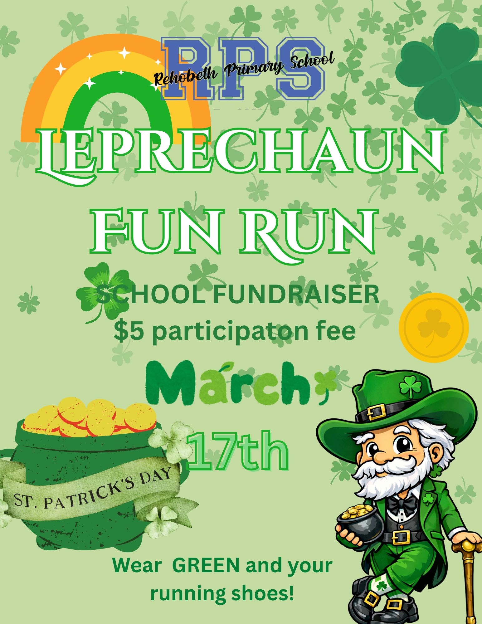 Leprechaun Fun Run forms will be sent home tomorrow! Participation fee of $5 is due March 13th if your child would like to participate.